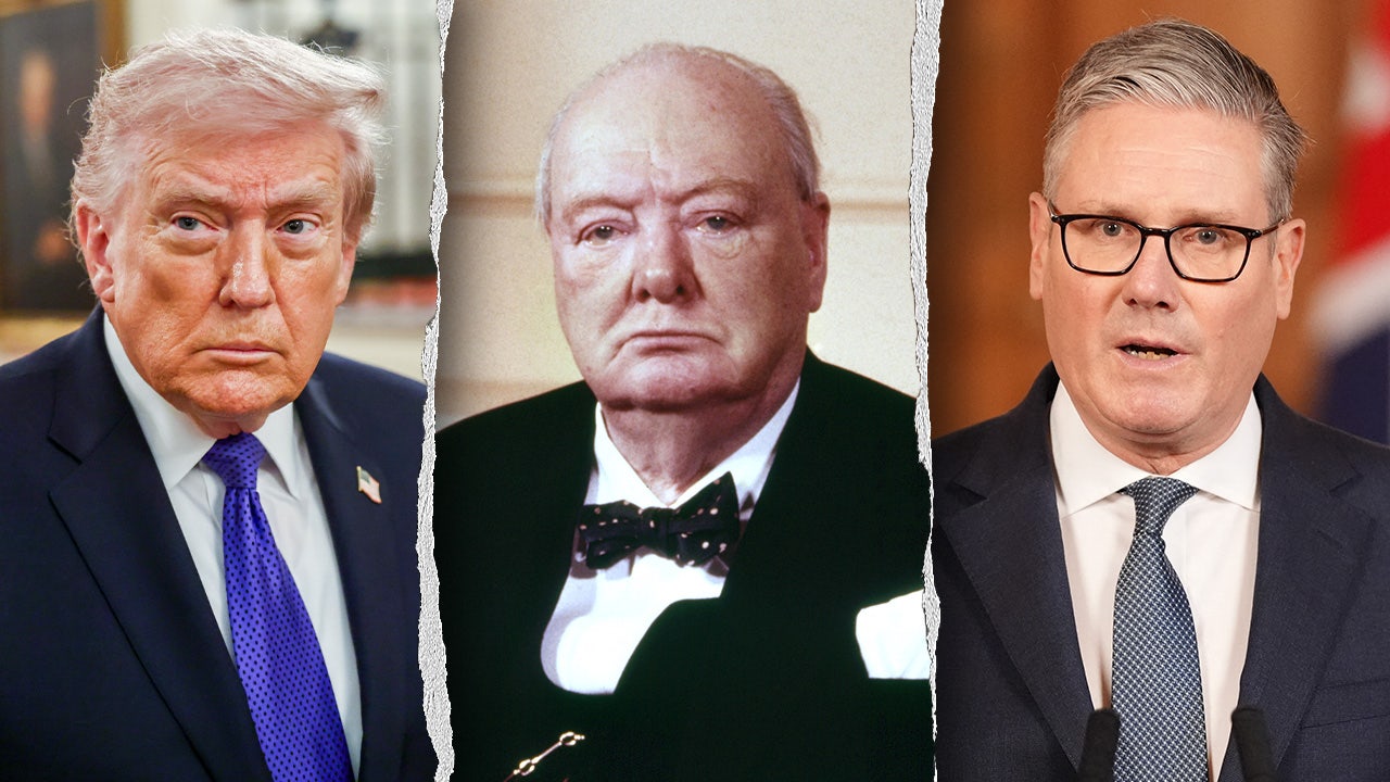 President Donald Trump blasted British Prime Minister Keir Starmer Tuesday, saying “this is not Winston Churchill we are dealing with.” (Jim Lo Scalzo/EPA/Bloomberg via Getty Images; PA Images via Getty Images; Jonathan Brady / POOL / AFP via Getty Images)