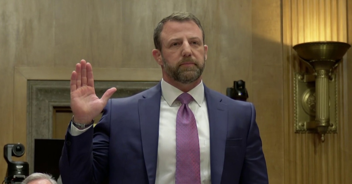 Senators grilled Sen. Markwayne Mullin during a hearing over his confirmation to become the next Secretary of Homeland Security. Congress remains in a standoff over DHS funding, leading to massive TSA lines at airports across the country. NBC News’ Tom Costello reports.