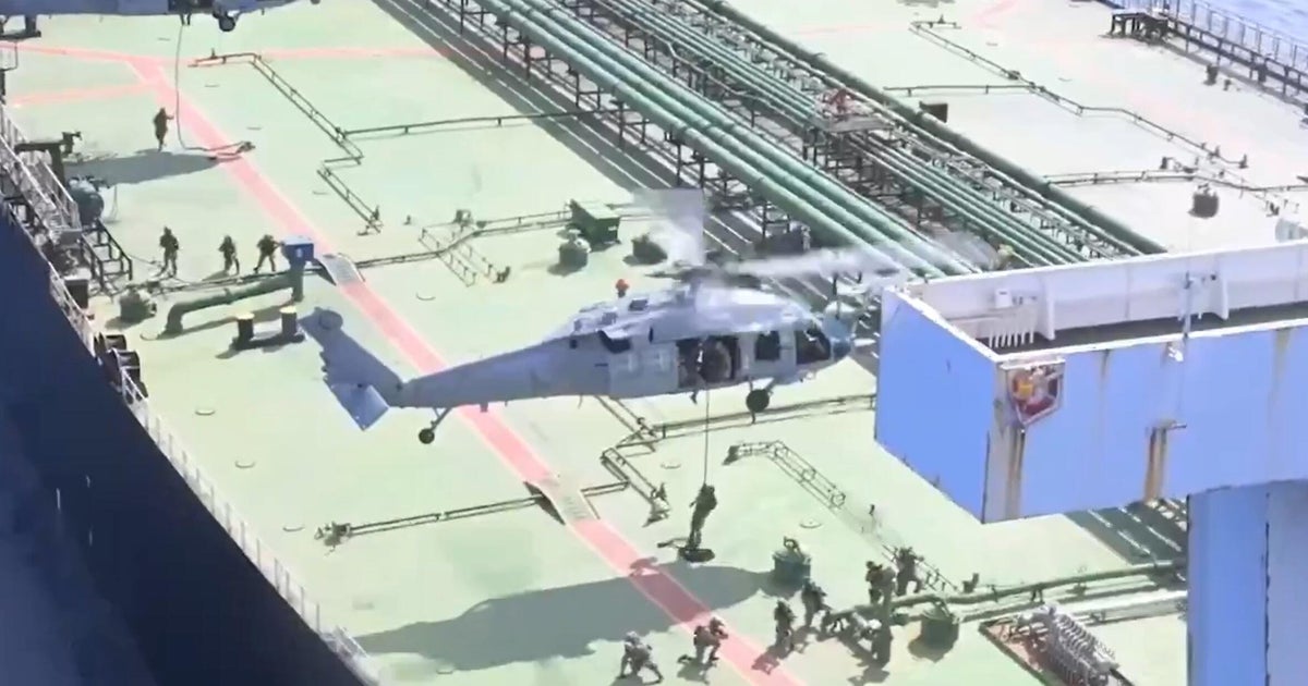 Video shared by the military appeared to show the interdiction, with U.S. forces descending from a helicopter and walking on board a massive tanker.